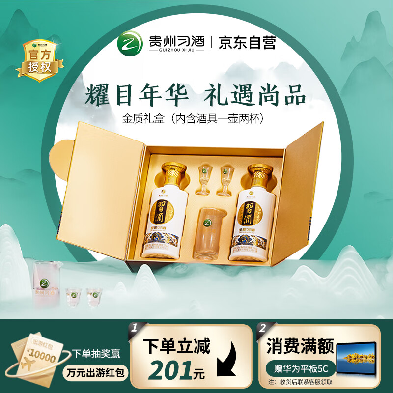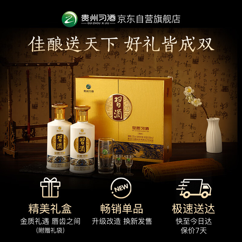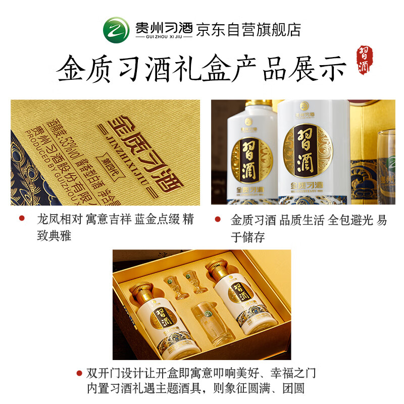 习酒第四代金质 酱香型白酒 53度500ml*2瓶 礼盒装(含酒具)贵州白酒价格:689.00元!