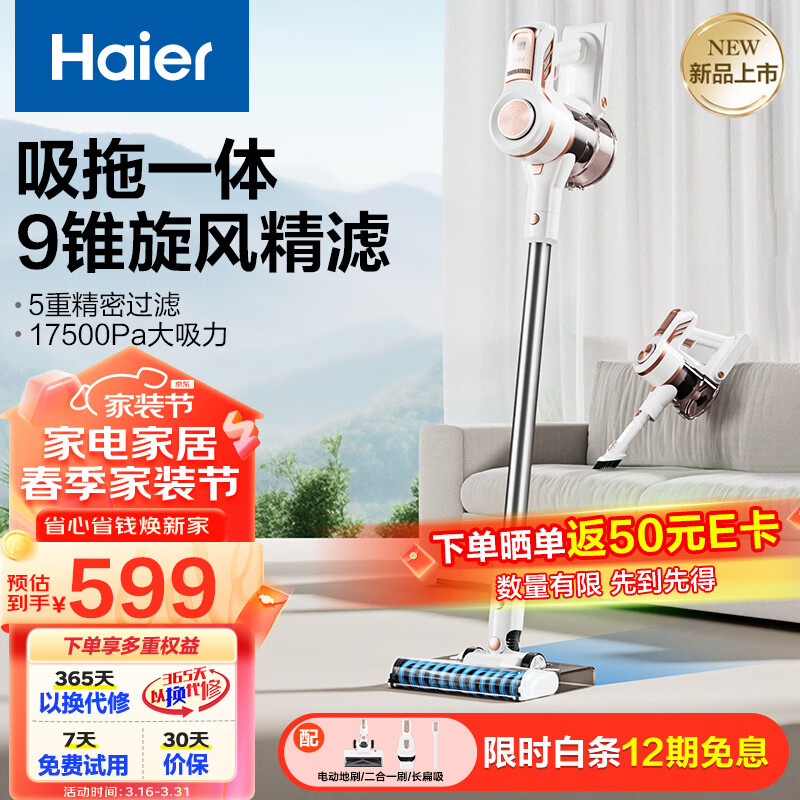 海尔(haier)吸尘器家用手持无线 G16S白色吸尘拖地一体机超高速电机大吸力续航升级 宠物吸毛价格:599.00元!