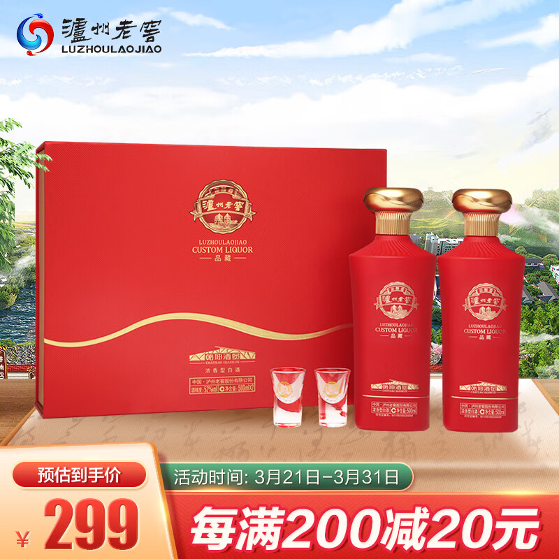 泸州老窖 乾坤酒堡 品藏 浓香型白酒 52度 500ml*2瓶 礼盒装 节日送礼价格:319.00元!
