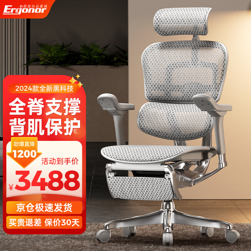 保友办公家具(Ergonor)金豪e 2代高端人体工学椅电脑椅办公椅电竞椅 银白Q4.0网+躺舒宝价格:4688.00元!