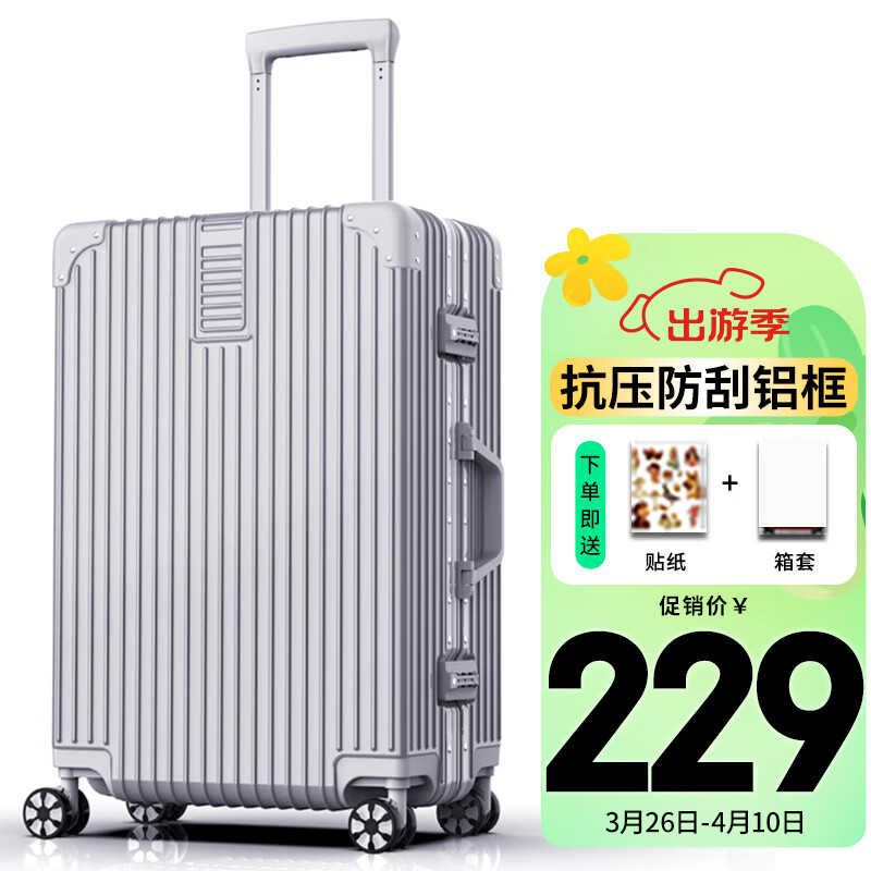 SOO行李箱男铝框商务拉杆箱旅行箱密码箱女皮箱子手拉箱 24英寸银色价格:249.00元!
