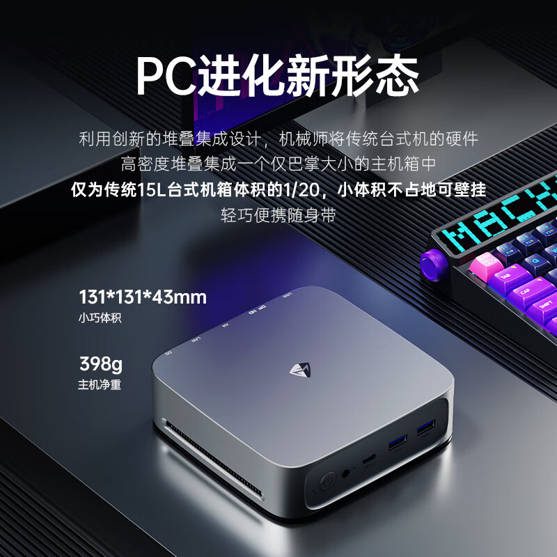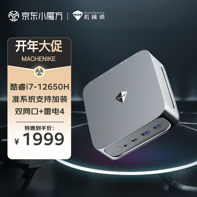 机械师(MACHENIKE)创物者Mini 高性能商务办公电脑台式迷你口袋主机准系统(12代i7-12650H 无内存硬盘 WIFI6)价格:1999.00元!