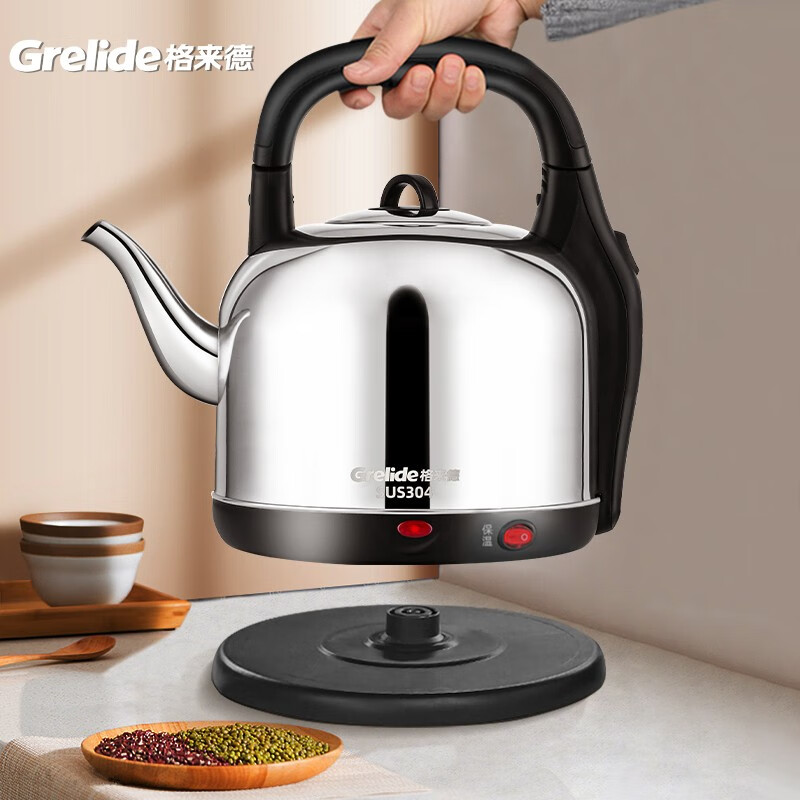 格来德 (Grelide) 烧水壶大容量5L电热水壶304不锈钢热水壶家用开水壶烧水器宿舍办公室茶壶 5001K【5L保温款】 5L价格:159.00元!