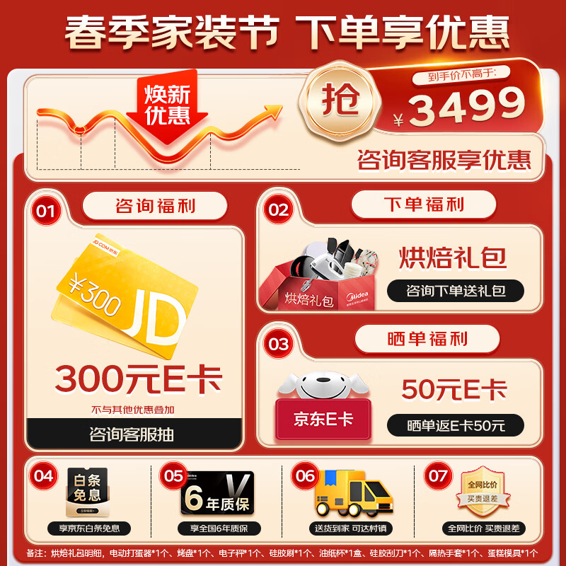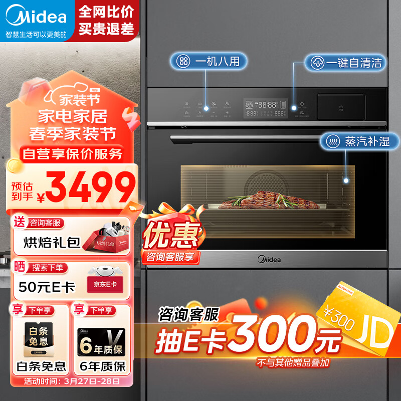 美的(Midea)蒸烤箱一体机嵌入式家用55L大容量蒸烤炸三合一搪瓷内胆3D热风APP智控云食谱自清洁A5048W价格:3399.00元!