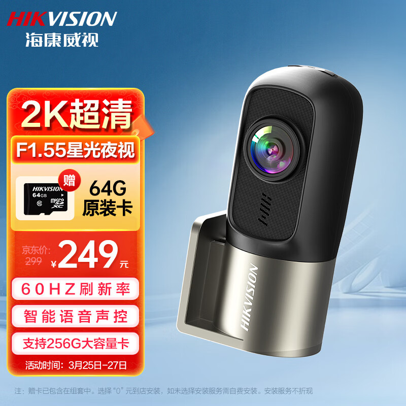 HIKVISION海康威视行车记录仪D1Pro 1440P高清星光夜视F1.55光圈语音声控价格:269.00元!