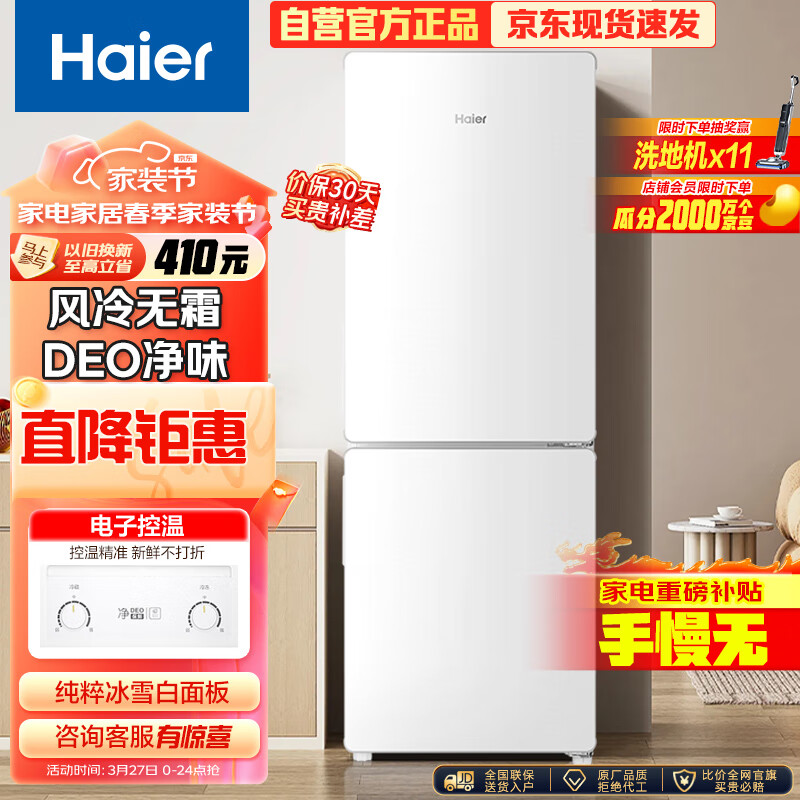海尔(Haier)170升两门二门双门节能低噪风冷无霜小型家用电冰箱宿舍租房不占地方以旧换新BCD-170WLHC2Z0WV价格:999.00元!