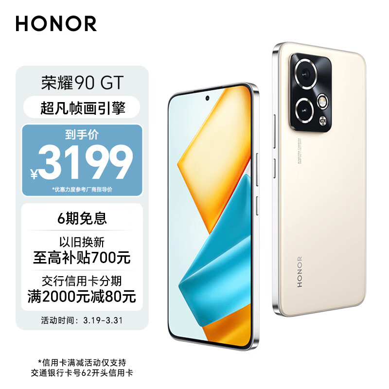 荣耀90 GT 第二代骁龙8旗舰芯 超凡帧画引擎 荣耀绿洲护眼屏 5000mAh轻薄长续航 OIS 16+512 燃速金 5G直屏价格:2999.00元!