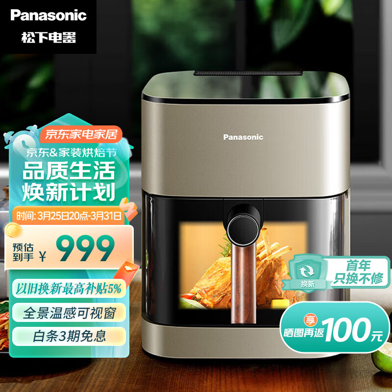 松下(Panasonic)多功能全景可视窗 家用全自动无油大容量 无需翻面 空气炸锅 NF-HC500-N价格:999.00元!