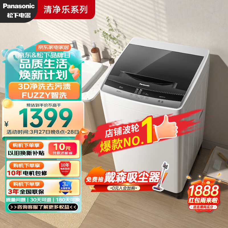松下(Panasonic)波轮洗衣机全自动清净乐号 桶自洁耐脏 强力去污 10公斤 大容量 以旧换新 XQB100-3K1N7价格:1399.00元!
