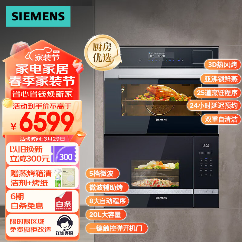 西门子(SIEMENS)微波炉嵌入式蒸烤箱一体机套装智能蒸汽烤箱蒸箱二合一BE525+CS389价格:6599.00元!