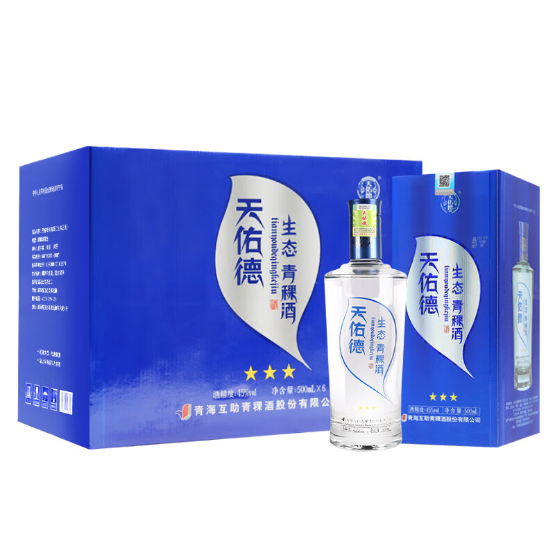 天佑德三星生态清香型白酒45度500ml*6瓶整箱装【青海青稞酒】价格:358.00元!