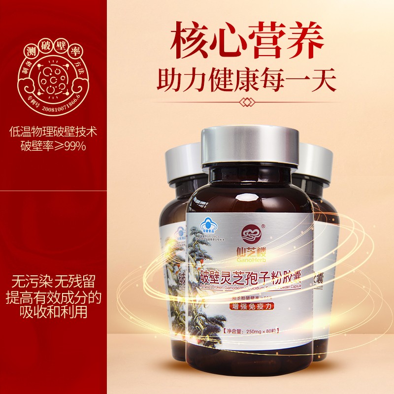 仙芝楼 破壁灵芝孢子粉胶囊0.25g*80粒/盒*18盒 增强免疫力【半年量】价格:3204.00元!