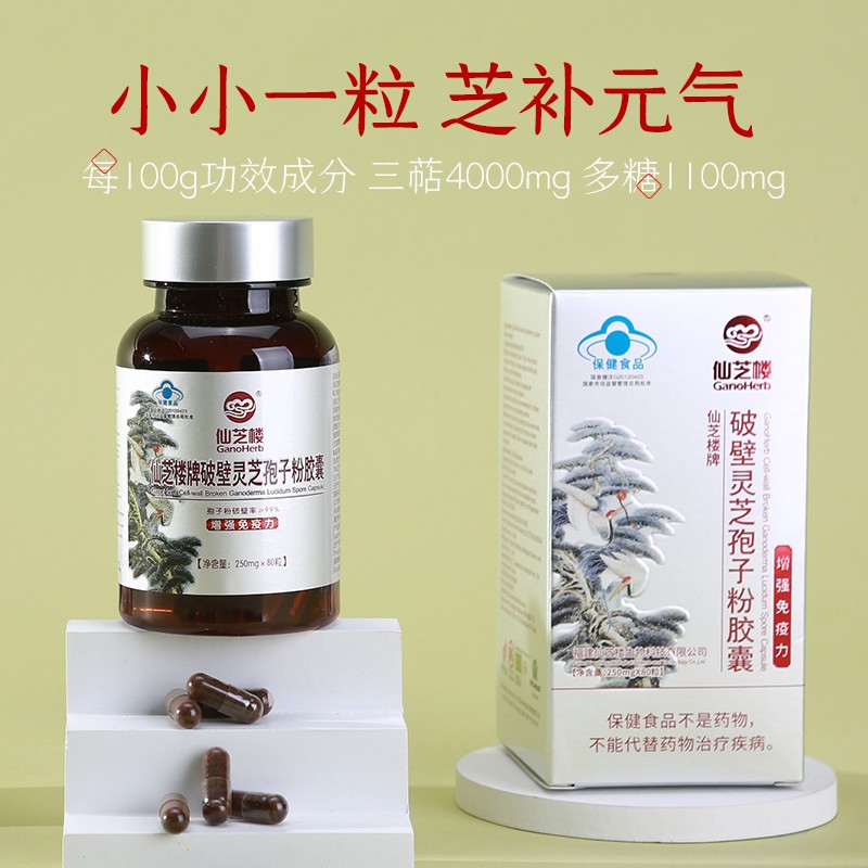 仙芝楼破壁灵芝孢子粉胶囊0.25g*80粒/盒配置参数: