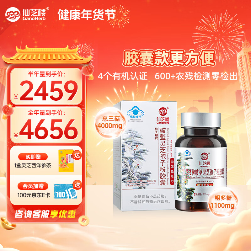 [hidden]【点击查看仙芝楼破壁灵芝孢子粉胶囊0.25g*80粒/盒活动分享】