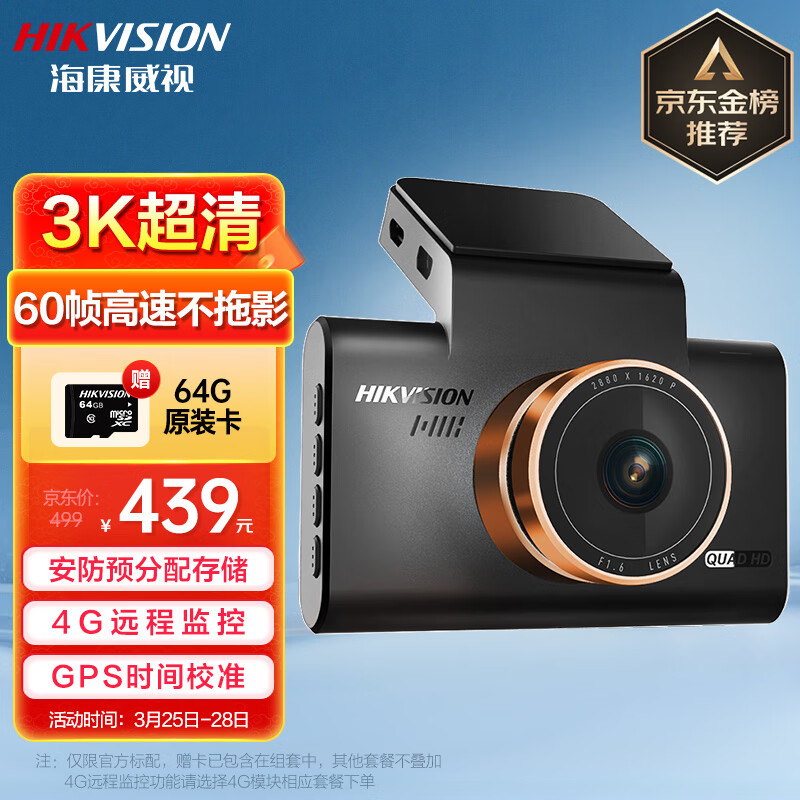 HIKVISION海康威视行车记录仪C6Pro+ 3K超高清星光夜视 GPS自动校时4G远程价格:439.00元!