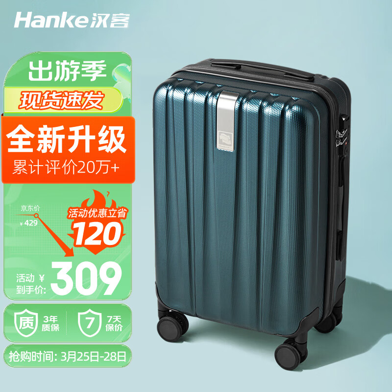 汉客行李箱男拉杆箱女登机旅行箱20英寸墨绿色密码箱镇店之宝再次升级价格:429.00元!