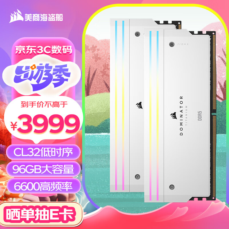 美商海盗船 (USCORSAIR) 96GB(48Gx2)套装 DDR5 6600 台式机内存条 统治者泰坦 RGB灯条 白色 C32价格:3999.00元!