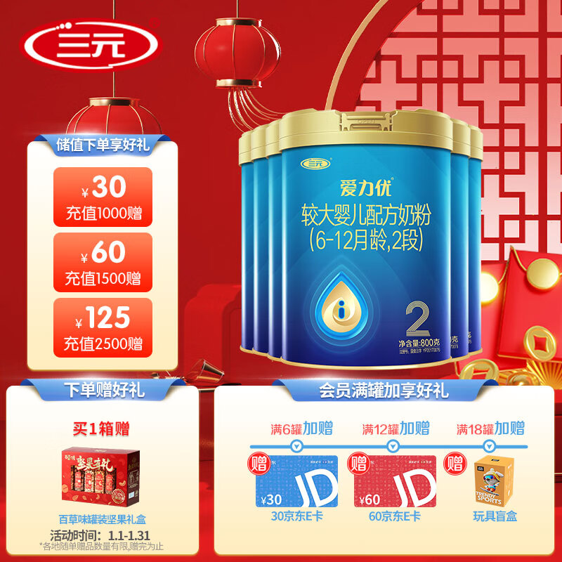 三元爱力优较大婴儿配方奶粉2段(6-12个月)整箱装(800克*6罐)价格:2010.00元!