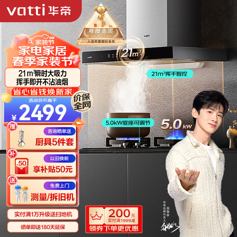华帝(VATTI)抽油烟机家用大吸力排油烟机燃气灶烟灶套装21风量欧式顶吸吸油烟机灶具套装i11176液化气价格:2499.00元!
