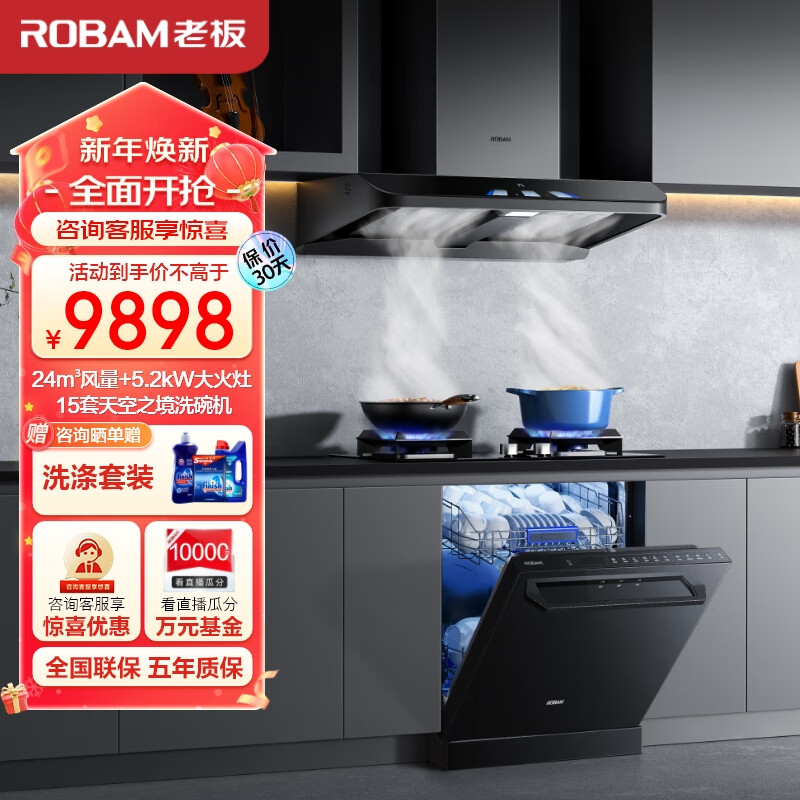 老板(Robam)钢琴家D3S智能变频 24风量抽油烟机15套洗碗机嵌入式独立式两用厨房多件套62D3S+57B6DT+F80D黑价格:9898.00元!