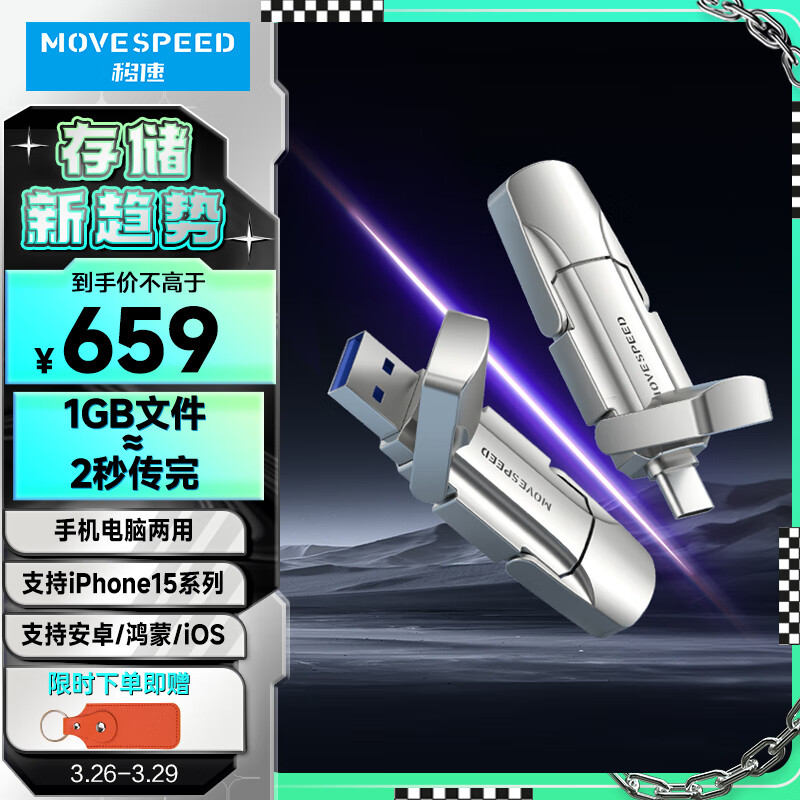 移速(MOVE SPEED)1TB USB3.2/Type-c双接口 固态U盘 逸V系列 读速550M/s 苹果15系列 安卓&鸿蒙 车载优盘价格:799.00元!
