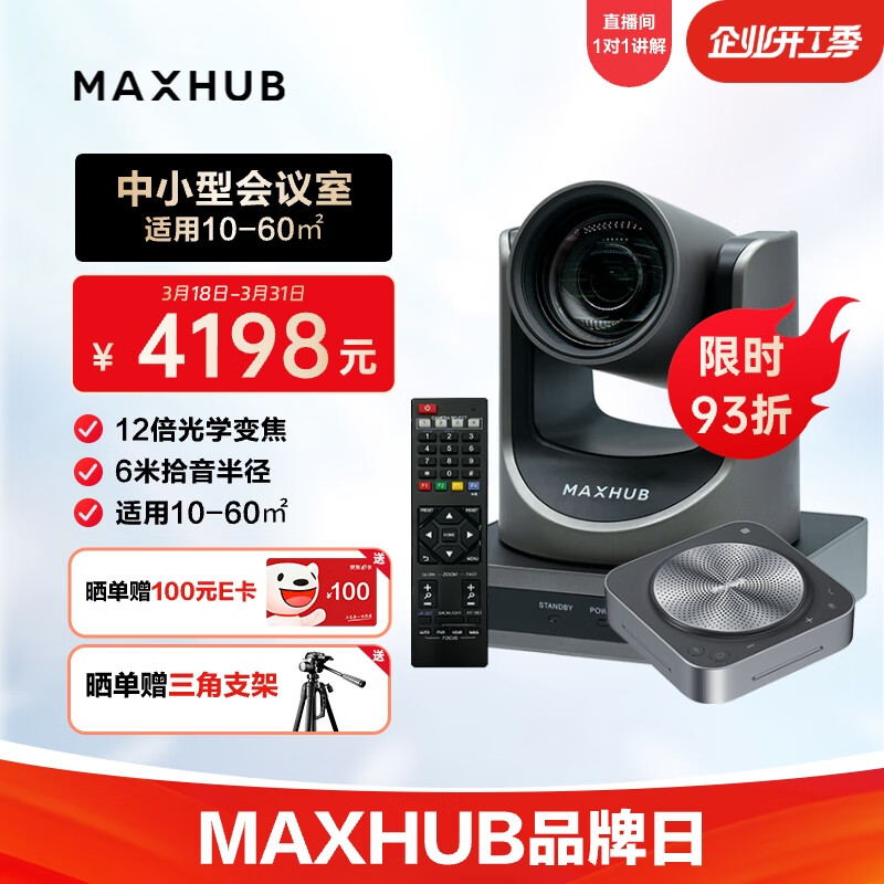 MAXHUB视频会议设备全套系统套装 解决方案1080P高清12倍光学变焦云台摄像头SC61+全向麦克风BM31拾音6米价格:2999.00元!