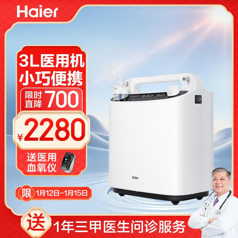 海尔(Haier)3L升制氧机医用级便携式家庭用制氧雾化一体机老人孕妇吸氧机高原随身小型制氧气仪器CP303W价格:2980.00元!