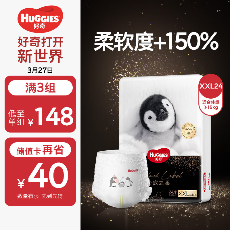 好奇(Huggies)治愈之柔企鹅裤成长裤XXL24片(15kg以上)加加大号婴儿尿不湿超薄价格:174.00元!