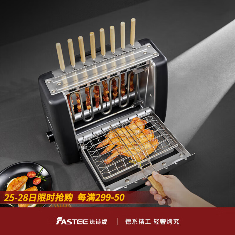 法诗缇(Fastee) 烤串机自动旋转烧烤炉电烤炉烧烤架电烧烤炉家用无烟烤串炉烤肉机烤羊肉串机 自动烤串机+烤网 2层价格:669.00元!