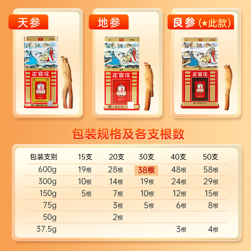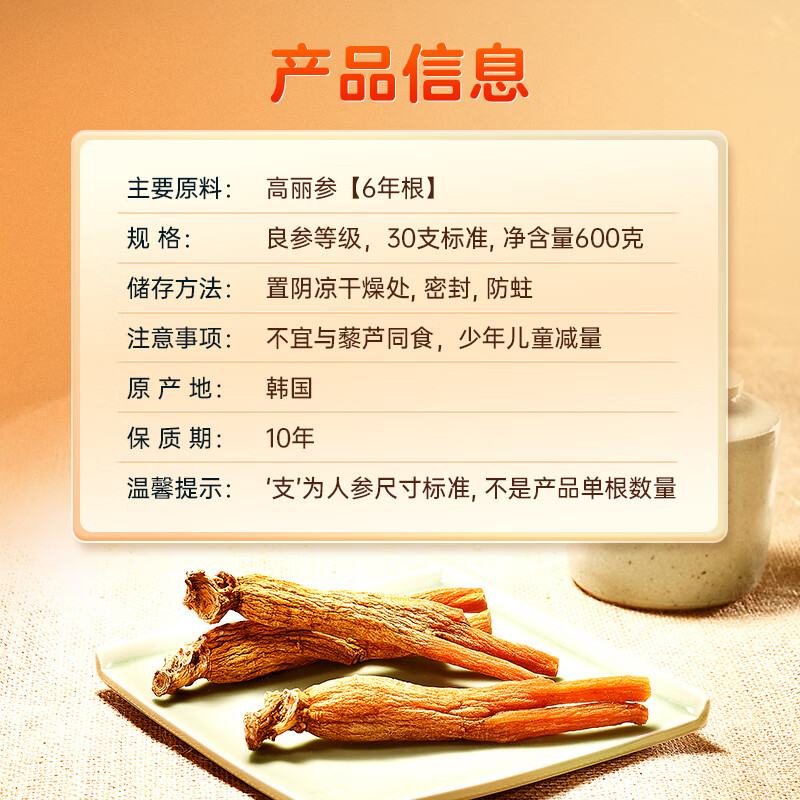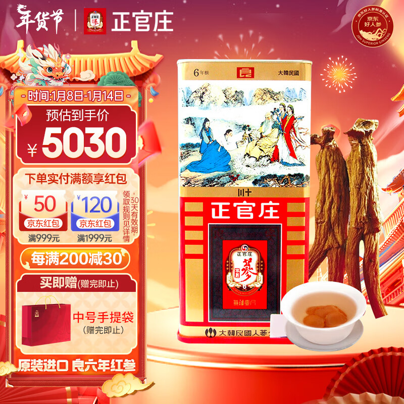 正官庄 人参 韩国原装进口 六年根高丽参 红参礼盒【良字】30支600g(约38根参)年货节春节滋补健康礼品补品价格:5900.00元!