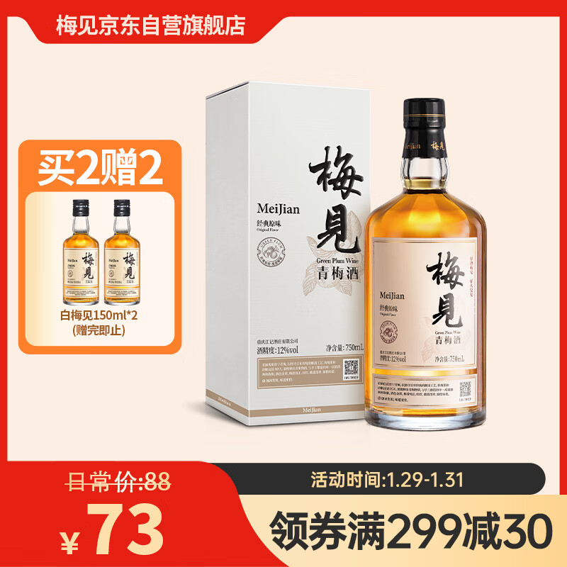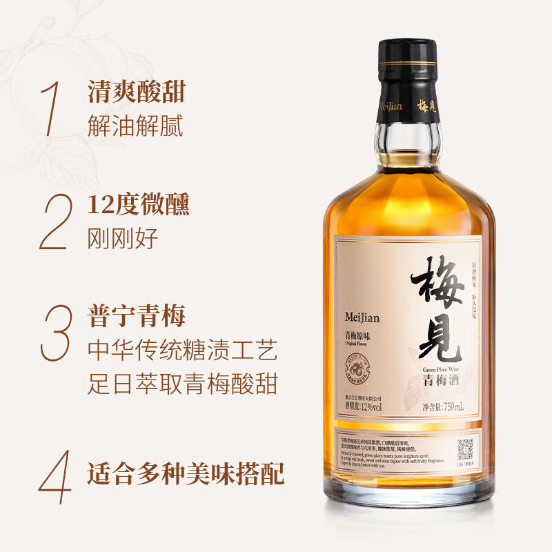 梅见 青梅酒 12度 750ml 单瓶装礼盒 白梅见果酒梅子酒新年送礼年货价格:85.00元!