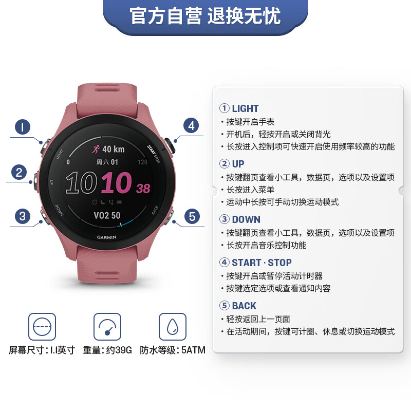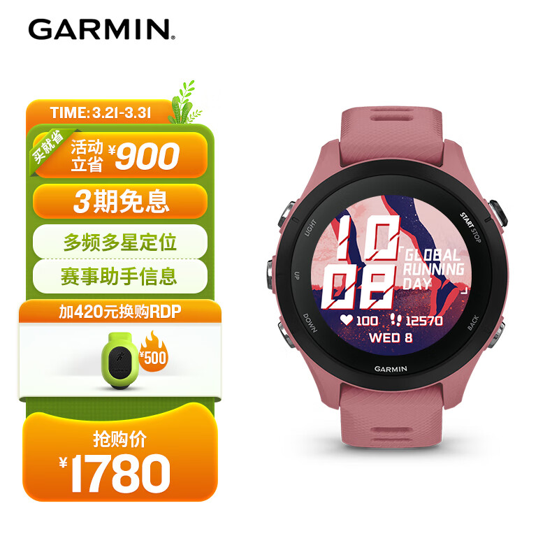 佳明(GARMIN)Forerunner255S智能手表铁人三项GPS多星定位心率血氧 泡泡糖粉价格:1780.00元!