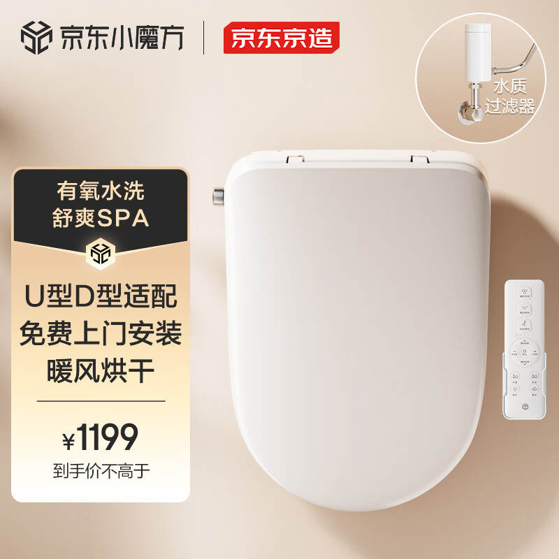 京东京造智能马桶盖U型D型 电动加热马桶盖 抗菌坐便圈 暖风烘干 冲清洗价格:1299.00元!