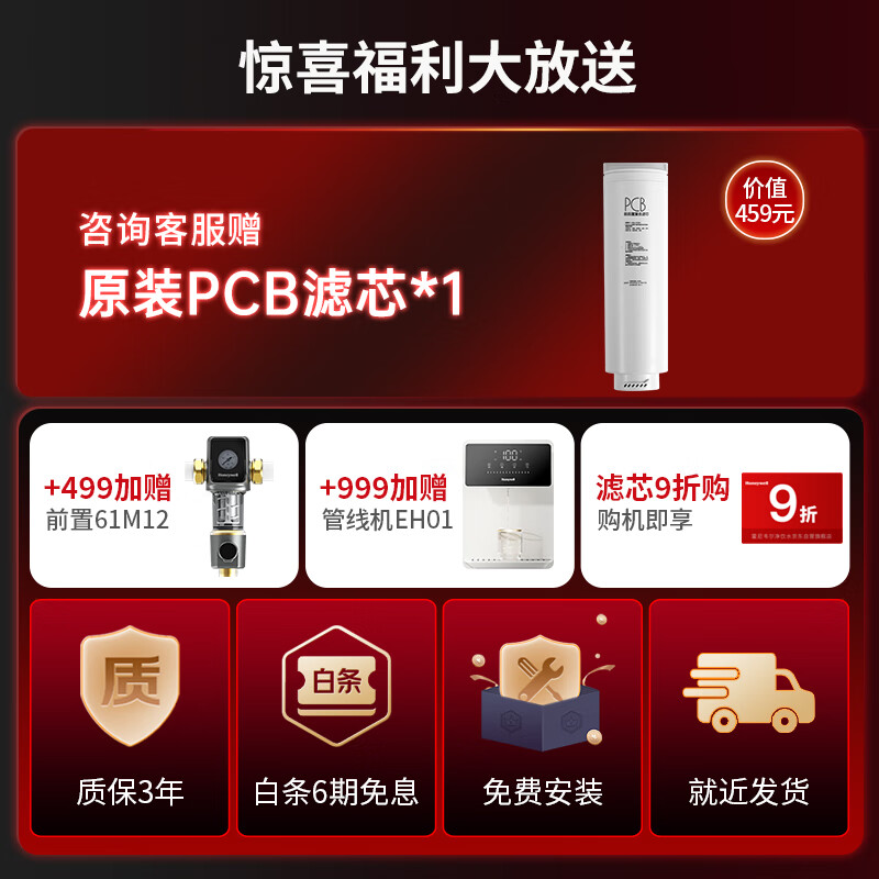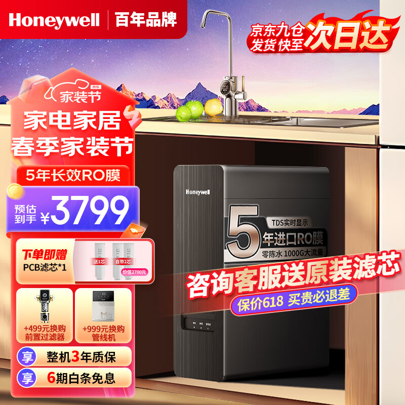 霍尼韦尔(Honeywell)贝加尔系列 厨下净水器1000G家用净水机厨房厨下式净饮机直饮机5年RO反渗透过滤器URHD1-210-M2价格:3799.00元!