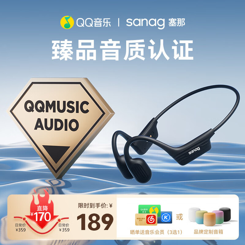 SANAG塞那 蓝牙耳机不入耳开放式气传导无线挂耳式运动跑步降噪防水长续航适用华为 逆光蓝 32G价格:229.00元!