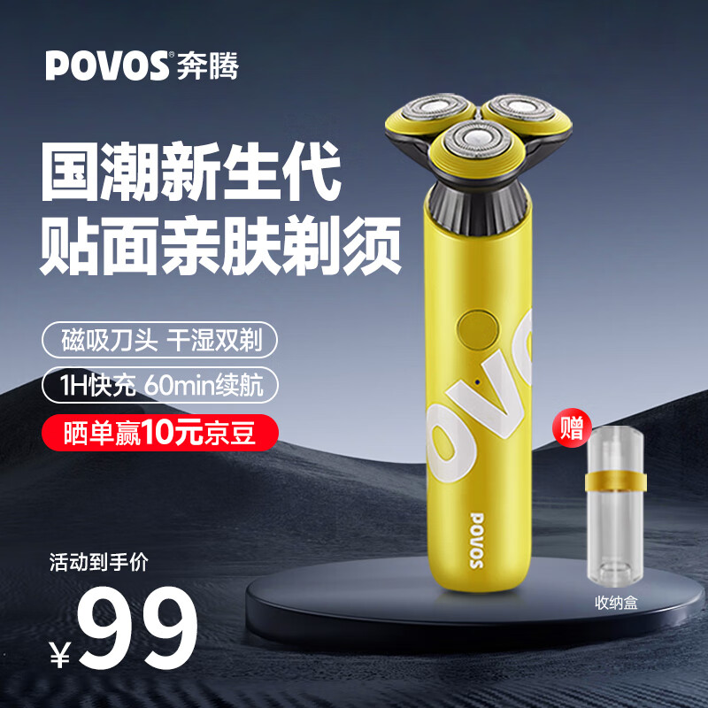 奔腾(POVOS)剃须刀电动刮胡刀胡须刀全身水洗快充PQ9700柠檬黄送男友送老公送男生生日纪念日礼物价格:103.00元!