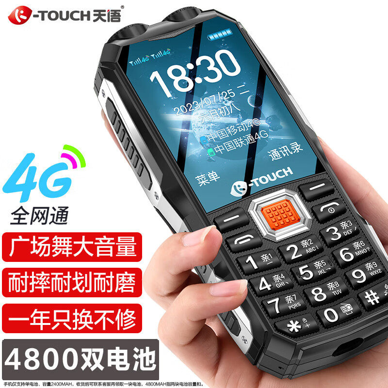 天语(K-Touch)Q31 通4G三防老人手机大电池超长待机移动联通电信直板按键功能机老年人手机黑色价格:128.00元!