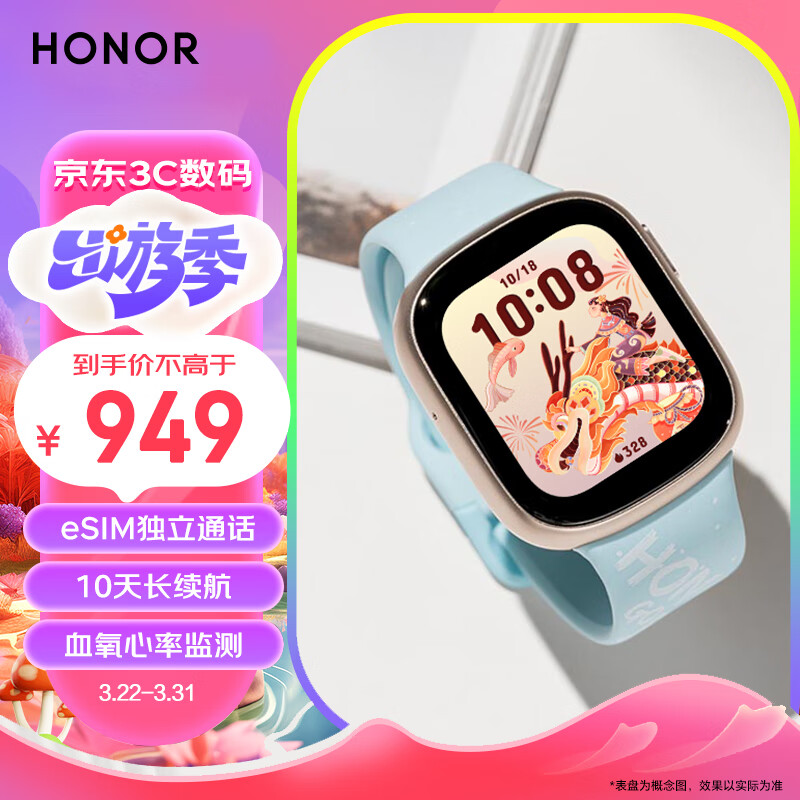 荣耀手表4 云水蓝 eSIM独立通话 10天长续航 全智能手表 男女运动手表 血氧心率监测 龙年表盘新年礼物价格:949.00元!