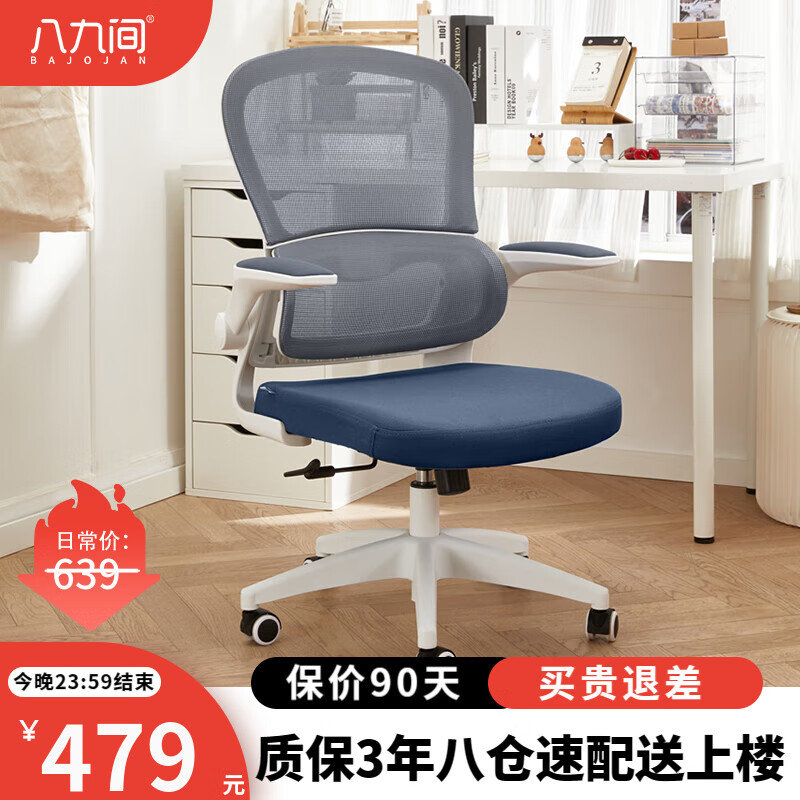 八九间 Y5电脑椅办公家用人体工学学习椅子学生升降座椅书桌转椅530W Y5_深灰_3D自适应腰靠价格:639.00元!