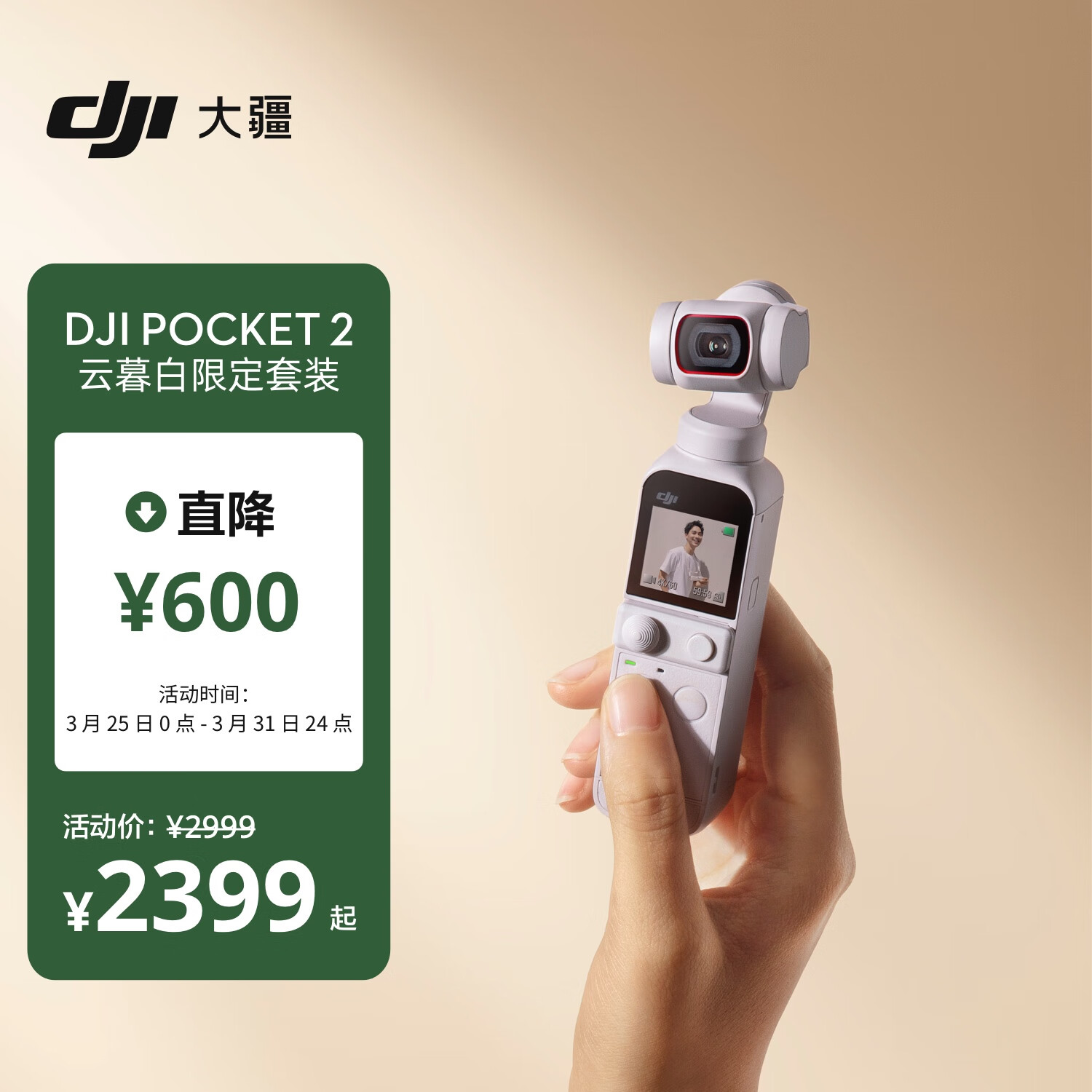 大疆 DJI Pocket 2 云暮白限定套装 灵眸手持云台口袋相机 运动相机 vlog全景数码相机 +随心换2年版价格:2718.00元!