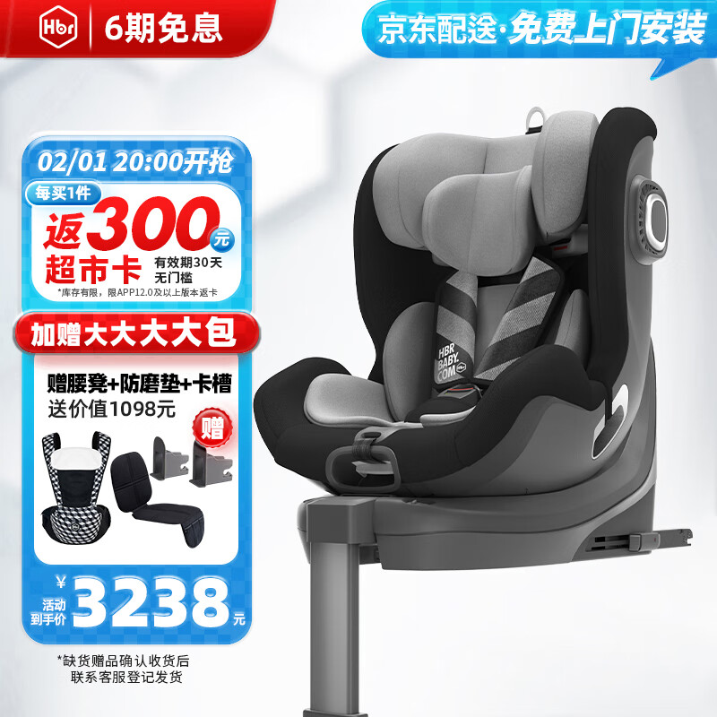虎贝尔(HBR)E360旋转婴儿童座椅汽车用0-4-12岁宝宝车载i-Size认证黑灰色价格:3488.00元!
