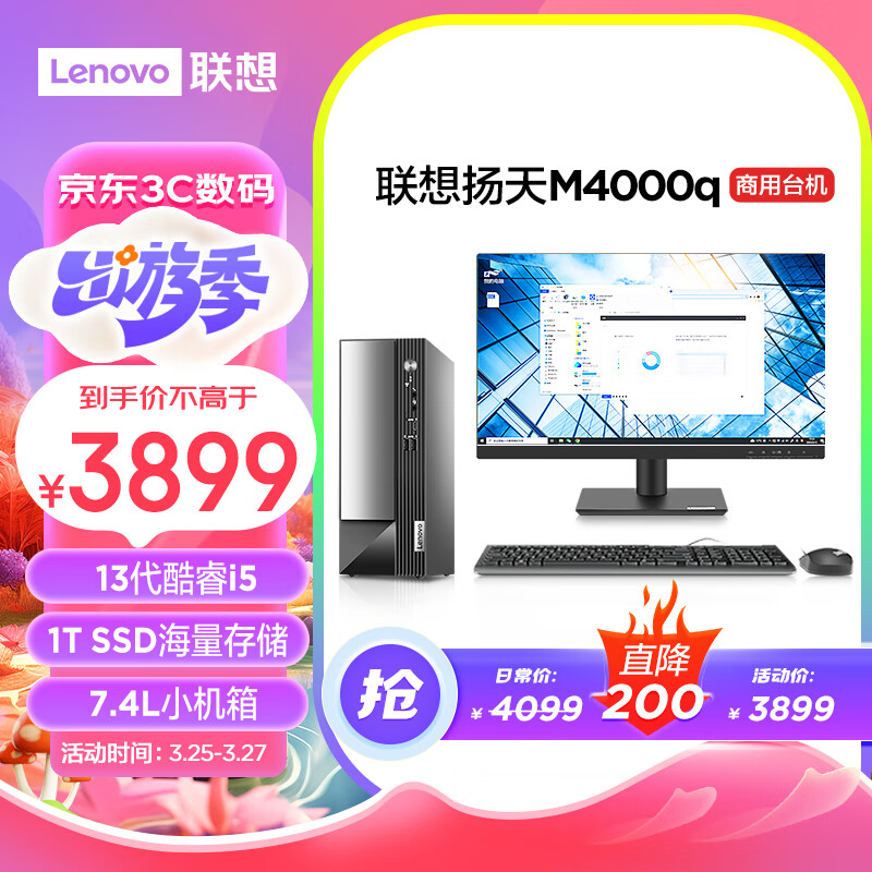联想(Lenovo)扬天M4000q 商用办公台式电脑主机(酷睿13代i5-13400 16G 1TB SSD)21.45英寸价格:3899.00元!
