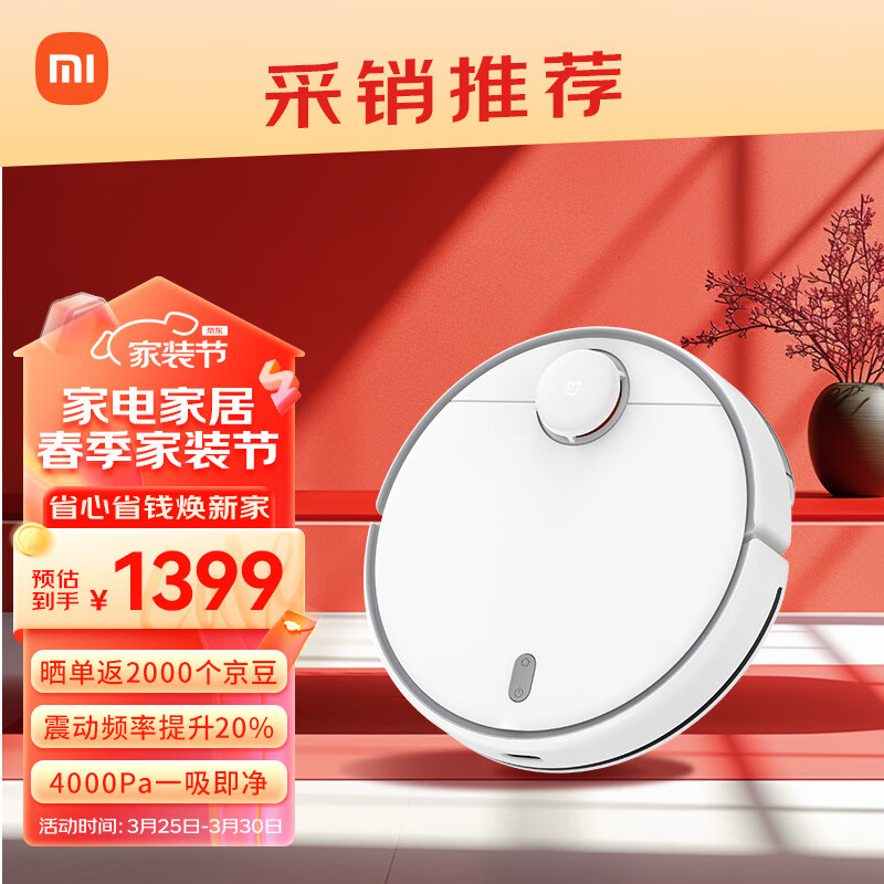 米家扫拖机器人 3 拖地机擦地机 LDS激光导航立体避障 小爱同学智能互联 扫拖一体机价格:1399.00元!