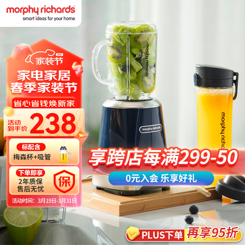 摩飞电器(Morphyrichards)榨汁机 便携式果汁机家用料理搅拌机梅森杯双杯水果电动榨汁杯MR9500价格:238.00元!