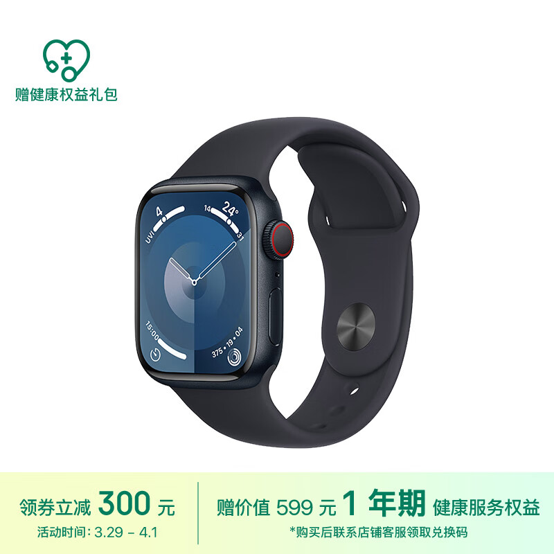 Apple/苹果 Watch Series 9 智能手表GPS+蜂窝款41毫米午夜色铝金属表壳午夜色运动型表带M/L MRJJ3CH/A价格:3799.00元!