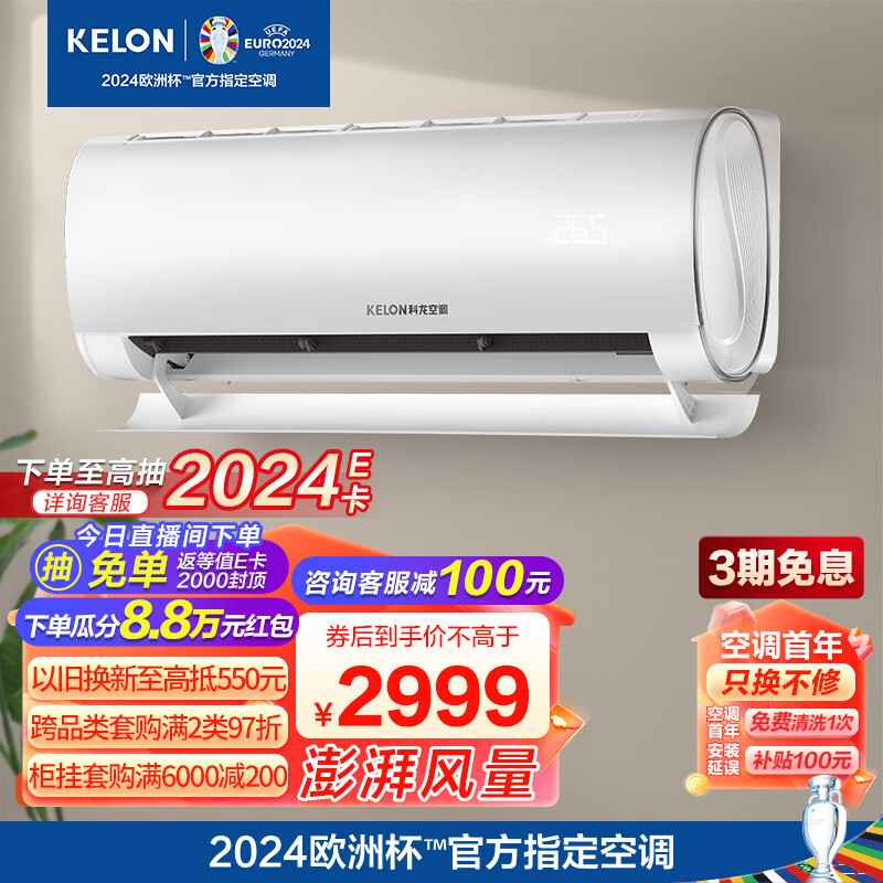 科龙(KELON)空调 2匹 新一级能效 大风量急速冷暖 变频省电 壁挂式挂机 卧室客厅空调KFR-50GW/QY1-X1价格:3099.00元!