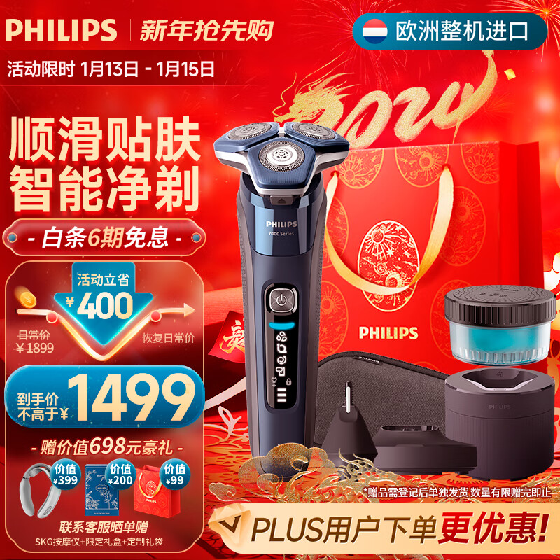 飞利浦(PHILIPS)男士电动剃须刀蜂巢7系Pro+ SkinIQ高端系列刮胡刀 欧洲进口【新年礼物送男友送老公】S7885/53价格:1699.00元!