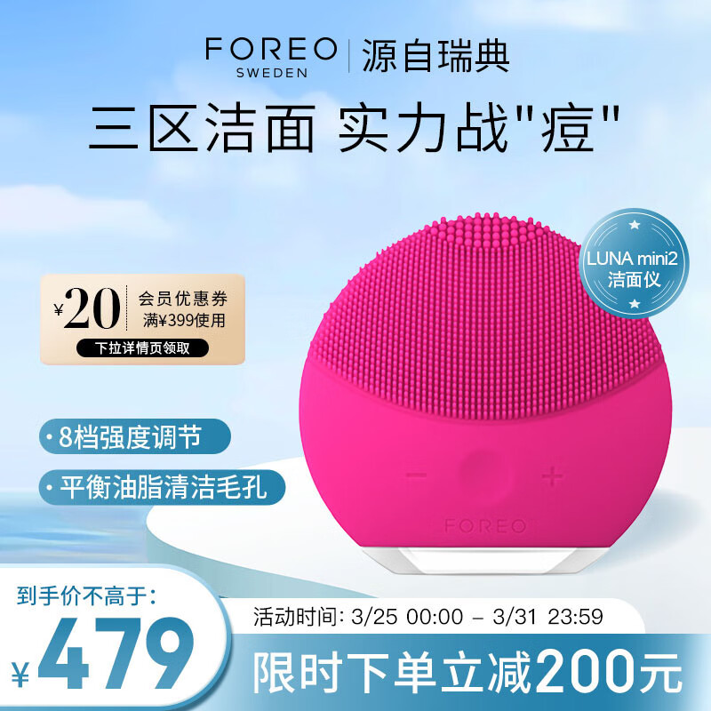 斐珞尔(FOREO)露娜洁面仪LUNA mini2净透洗脸仪电动深度清洁彩妆残留收缩毛孔洗脸神器女生日礼物送老婆 樱桃红价格:679.00元!