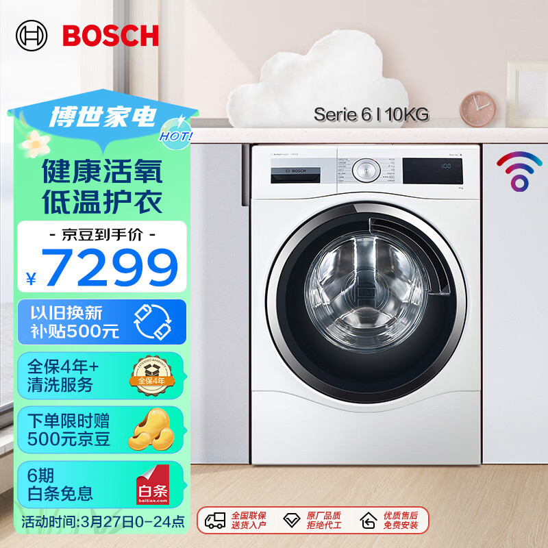 博世(BOSCH)【云朵白·活氧版】6系10KG全自动家用大容量1400转高效智能除菌除螨祛味滚筒洗衣机WGC354B01W价格:7799.00元!