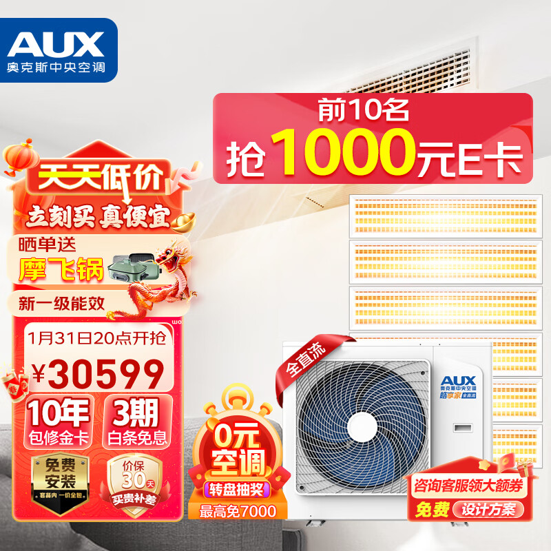 奥克斯(AUX)中央空调大6匹一拖六家用小多联机风管机1级能效全直流变频嵌入式空调适用五室一厅DLR-H160W(G1)价格:29599.00元!